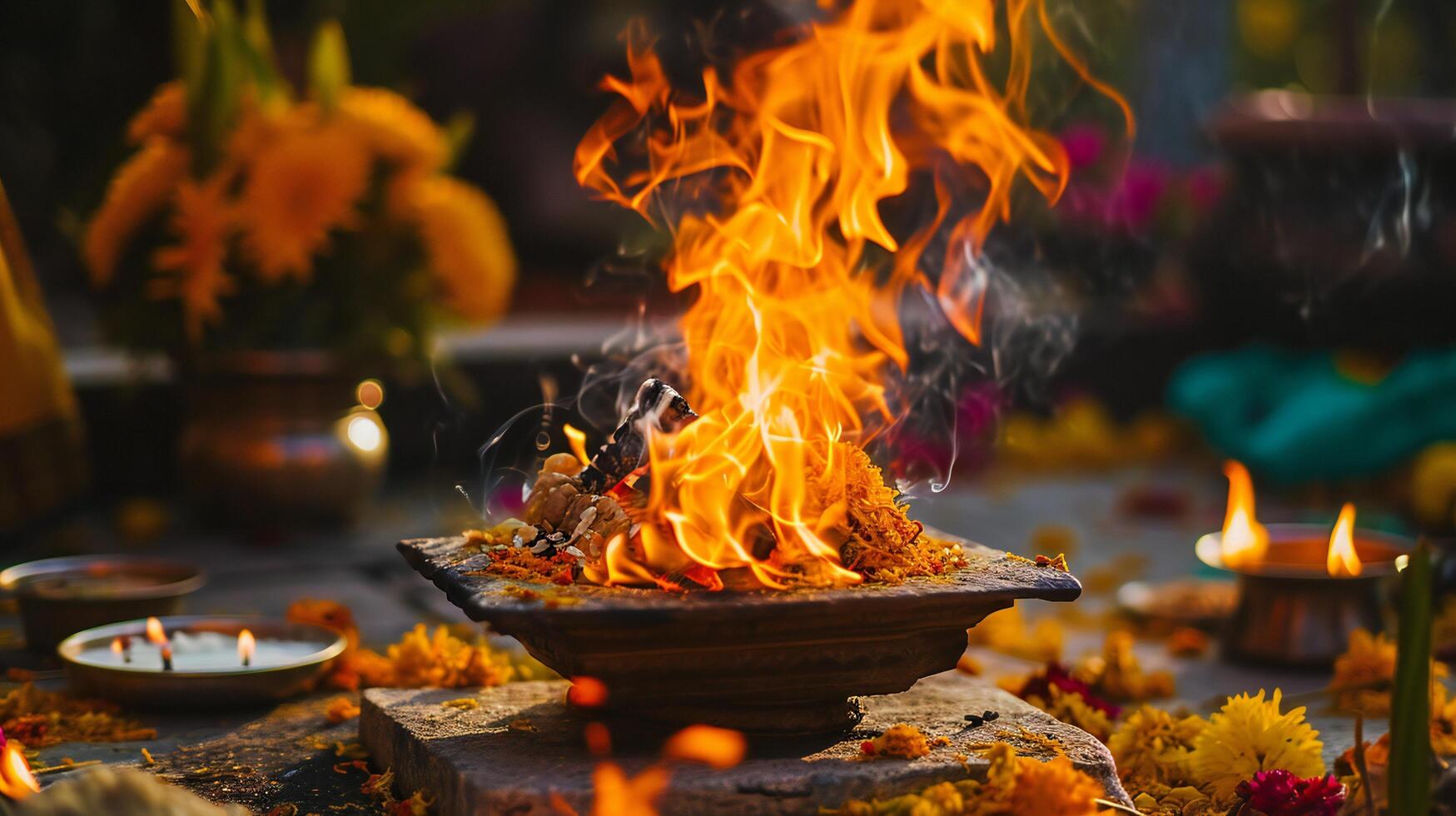 The homam is conducted by a qualified priest who leads the ritual with sacred mantras and offerings.